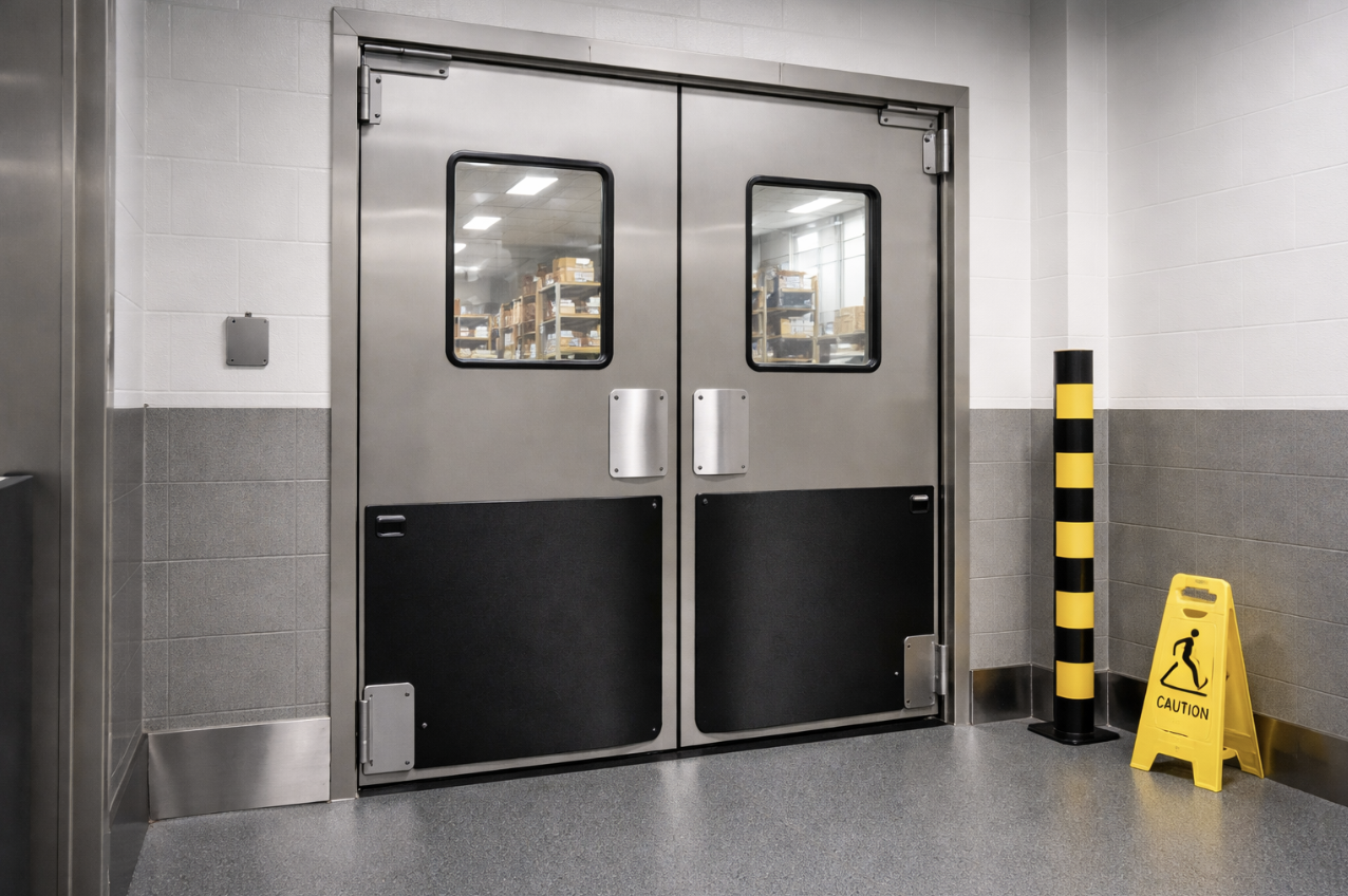 Hollow metal and steel impact rated doors are widely used for exterior openings, service areas, and high-risk locations. Their reinforced metal construction provides excellent impact resistance and durability under repeated pressure cycles.